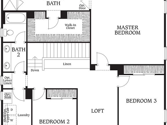 Dover's Plan 1 is an expansive two-story home offering 2,512 Sq. Ft. of living space. The entry hall opens to the main living area with a multi-functional great room, dining, and open kitchen. The gourmet kitchen features a center preparation island overlooking the spacious living area. The kitchen includes recessed-panel Beech Shaker cabinetry with your choice of 3 stained finishes, and chrome knobs, granite kitchen countertops with 6" backsplash, Bertazzoni Master Series kitchen appliance package with 36" range, microwave, and dishwasher. A secondary bedroom is located off the kitchen. The second-floor features 2 additional secondary bedrooms, a bathroom, loft, and centrally located laundry. The spacious master suite features a stunning spa-like bathroom with dual sinks and a large walk-in shower, free-standing tub, and walk-in closet.
