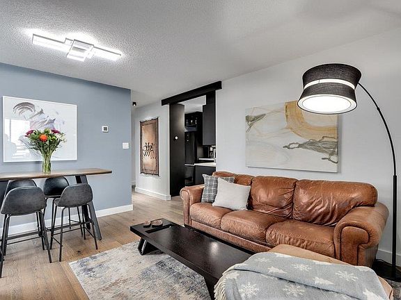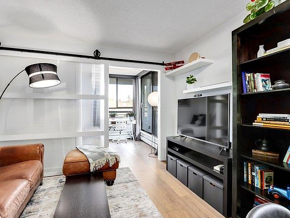 Sophisticated 1 bed & den, 745sf, corner suite. Meticulously renovated with contemporary finishes through-out. Updates include total kitchen & bath renewal, modern fixtures & appliances, including wall oven, stylish engineered wood flooring, custom closet doors & more. The spacious den is currently used as a 2nd bedroom. This gorgeous suite boasts an amazing 200sf wraparound, covered balcony with open views. Conveniently located within walking distance to shops, Skytrain, and across the upcoming City of Lougheed community. Great value opportunity to buy early into this transforming neighbourhood. Shared complex amenities with activities for everyone! Parking & Storage included. 1 cat allowed. Strata fees include heat, hot water, AND electricty.