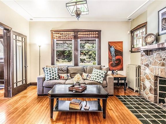Beautiful original charm preserved in this mission style home just minutes from the City of Pittsburgh. The restored woodwork, stained glass window, gleaming hardwood floors are giving this home character and timeless appeal. This home has it all: Living room accented by fireplace, stained glass fixtures and picture windows, Formal dining room with built-in cabinets and columns, Spacious kitchen with built-in cabinetry topped with granite and butcher board counter. Upstairs, 3 bedrooms with built-in closets, a large bathroom preserved to its original fixtures and an extra finished space in the attic. The lower level offers plenty of storage space, rooms of wine cellars, THE Pittsburgh potty and pencil sharpener! The private backyard is accented by a beautiful brick patio, garden and a 2-car detached garage that backs up to the woods. Welcome Home!