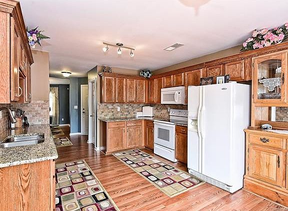 Open floor plan features spacious kitchen with granite counters and plenty of cabinetry, formal dining room with bay window, living room features fireplace with built-in tv niche,3 bedrooms and 2.5 baths, laminate floors, master bedroom features tray ceiling, granite in full baths, huge tiered deck providing great space for outdoor entertaining, fenced yard and walking distance to Kilborne Park. Choice home warranty valued at $480!