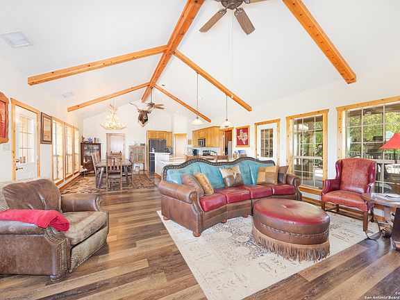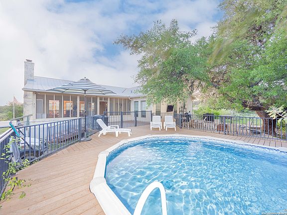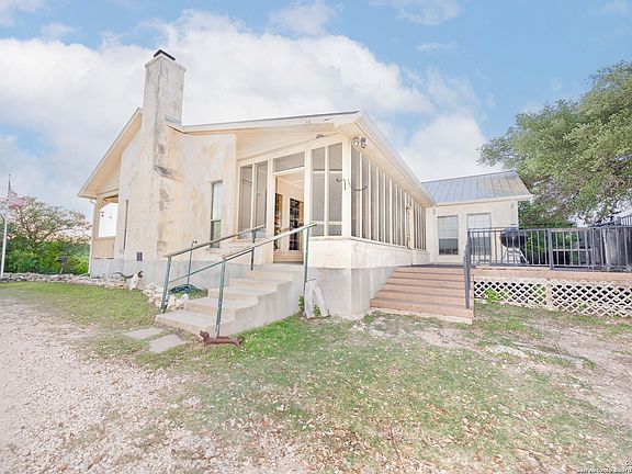 130 +/- Acres. Paved county road where you'll be greeted by an electric gated entrance to the main House which is 1860 sq. ft. with 3 bedrooms, 2 baths, with an open floor plan, large island, and an above-ground swimming pool with wrap-around deck which is great for entertaining. There are a lot of windows adorning natural light throughout, allowing you to take in the nature and local wildlife. There is 2 Edwards water wells, multiple outbuildings to include a barn complete with an office and upstairs storage, sheds, horse stalls, large chicken coop with hen house, currently yielding 16 eggs per day, so start your morning with fresh eggs on your porch watching the sun come up over the Texas Hill Country. The second house has its own gated entrance off the county road, and is surrounded by a high fence. It is 828 sq. ft., 1 bedroom, 1 bath needs some TLC. The Martin Creek (wet weather creek) traverses through the property, there is beautiful 30 foot rock cliffs, then divides and exits the property. Texas A&M students have explored the cave on the property that goes down into the Edwards Aquifer. The ranch is fenced and cross-fenced, currently running cattle and horses. The ranch has water lines running to several water troughs. There are horse stalls and cattle pens. The stock tank has a natural spring that maintains some water even in drought conditions. There are 4 hunting blinds and 4 feeders. The vegetation is your typical hill country: live oaks, junipers, cedars, persimmons, mountain laurels, and native grasses. The low fences allow a nice amount of native wildlife, including white-tailed deer, hogs, turkeys, coyotes, and other small animals. A small portion of this property is on the opposite side of the county road, currently grazing goats. Watch the attached video for a better idea of all that this property has to offer.
