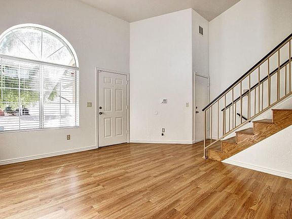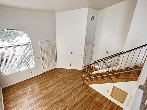 Beautiful architectural details set this house apart from the others. Large arched windows, stunning wood flooring, soaring vaulted ceilings, pot shelves and an open loft kitchen that looks down over the family room are just a few of the surprises in this home. Plush carpet in the master bedroom with tiled ensuite bath features double sinks, large mirror and walk-in closet. Secondary bedrooms and laundry room are downstairs from the main level and the master retreat is on the third level for separation and a lot of privacy! Ceiling fans and exquisite wood flooring are in all the secondary bedrooms. Head out to the second story balcony for blue skies and mountain views! The front and back yards are low care and big enough to bring the big toys! This home is move-in ready!