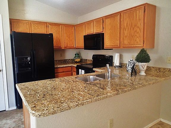 This adorable 2 story house has been updated with new A/C, new roof, solar panels,16 inch tile in the living spaces, granite counter tops in the kitchen & baths, laminate flooring on stairs and second floor, neutral paint through out, newer lighting, sinks & faucets and the list goes on! Kitchen is equipped with black appliances: smooth top range, over the hood micro, water & ice in the fridge & dishwasher. Breakfast bar and eat in kitchen. Ceiling fans in all bedrooms & living areas. 2" blinds. Master bath has a garden tub and double vanity. Very spacious master bedroom with walk in closet. RV gate to good sized grassy backyard with 2 nice shade trees. 2 car garage with epoxy coating. Alarm system. Nice big covered patio with ceiling fan. Sparkling community pool to cool off in! A must see!! Agents we do not wish to list, but if you bring us a buyer we will compenstate you.