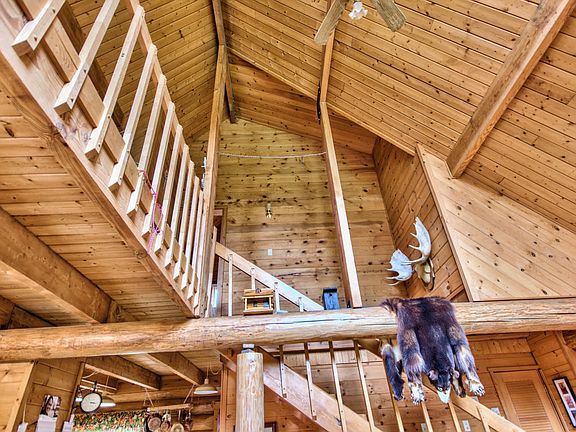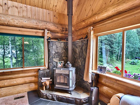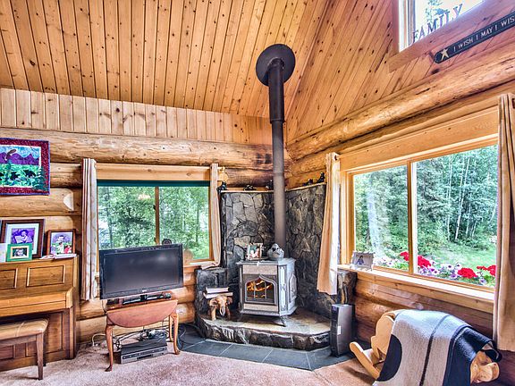 VA appraisal done. One of the only scribe fit log homes on the market. A quiet lot with creek frontage in central location. High vaulted ceilings in the living room. Loft for an office, sewing room, or whatever you imagine. 3 bedrooms plus office, family room and full bath in lower level, master on the top floor. Lots of room outside to run, garden or just play in the woods.