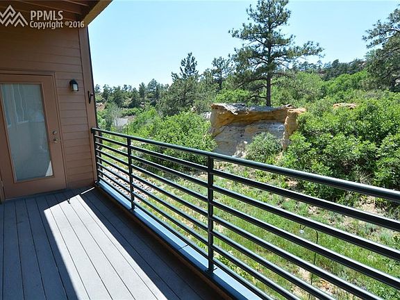 Beautiful, well maintained 2nd story condo overlooking Palmer Park! Elevators to secure, heated garage! Lots of privacy in this quiet complex! Open and bright living areas, with a private patio and fantastic views of the park and rock formations. Wood floors and under cabinet lighting in kitchen. Ceiling fans and AC! Fireplace in the living room. Hunter Douglas double cell duet blinds keep the home cool in the summer and warm in the winter! Convenient location. Backs to Palmer Park for hiking and exploring!