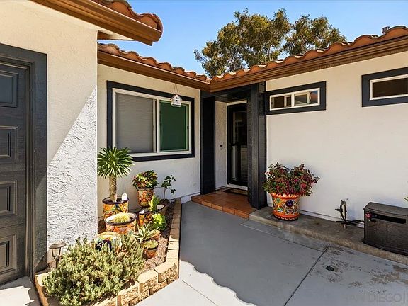 Perched atop a gentle mesa with southerly views of distant hills, the tastefully remodeled single-story main home is positioned on a corner lot within a welcoming cul-de-sac. Showcasing versatility and value, this residence includes a fully permitted, separate NEWER CONSTRUCTION ADU—ideal for multigenerational living, guest accommodations, or income potential. An oversized driveway and striking custom wood-and-glass entry door set the tone for the stylish interiors. Inside, a spacious living room is anchored by a stone fireplace with a dramatic custom wood accent wall and sconce lighting. The open floor plan flows seamlessly into the family-style chef’s kitchen, where an expansive hi-low granite island with gas cooking and a built-in breakfast counter for six invites gathering. Stainless steel appliances, abundant cabinetry, and distinctive pendant and recessed lighting enhance both form and function, while the adjacent flexible dining area repeats the custom wood accents to create an elegant yet inviting ambiance. Beautiful porcelain tile floors carry throughout the home, leading to a serene primary suite with an upgraded designer-finished ensuite bath. Four additional bedrooms, including a converted garage, provide generous accommodations. The backyard extends the living space with tri-fold doors to bring indoor/outdoor living with a large private patio featuring a shaded wood pergola and fire pit, complemented by a second covered patio ideal for evening breezes. Additional amenities include owned solar panels, dual-pane windows, A/C, ceiling fans, and a low-maintenance landscaped yard and turf! With its blend of thoughtful upgrades, flexible living spaces, and proximity to parks, schools, shopping, restaurants, and freeways, this property offers both sophistication and everyday convenience.