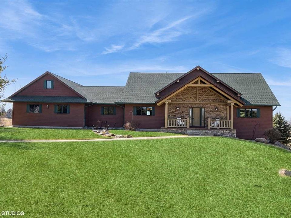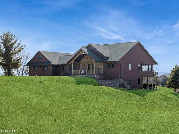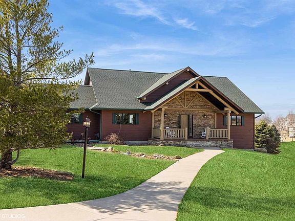 This charming quality custom built rustic home in Lacina Meadows Subdivision offers the perfect blend of tranquility and modern comfort. This property boasts stunning views creating an idyllic retreat from the hustle and bustle of everyday life. So welcome home to your sanctuary! Open-concept living space, with natural wood accents, exposed beams, large windows streaming an abundance of natural light & a stone fireplace is the perfect place to unwind. The primary suite is a peaceful retreat, with a private covered deck offering the sweeping views of the surrounding landscape & a private en-suite bath that exudes rustic charm. The cozy kitchen is big on functionality making it a perfect spot for both cooking & entertaining, enhanced by beautiful cabinetry, great pantry and new SS Appliances. The lower level family room is designed for both relaxation & entertainment. The beautiful fireplace creates a cozy ambiance perfect for gathering with loved ones. The built-in bar makes hosting effortless & large glass doors open seamlessly to the outdoor patio, leading to a picturesque firepit area that overlooks the tranquil community pond. Offering the perfect escape while still being conveniently close to essential amenities, this rustic retreat is an opportunity you won't want to miss.