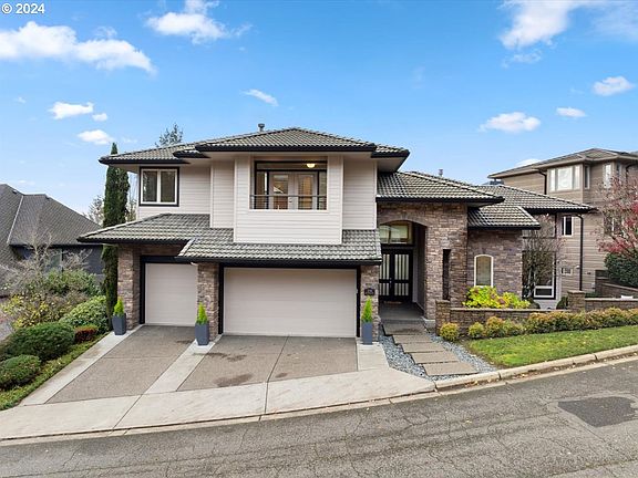Stunning remodeled custom home with high ceilings, territorial views and useable flat yard with outdoor entertaining area-backing to greenspace. Incredible floor plan with 5 bedrooms(3 suites) + den + bonus + exercise room + wine cellar + tasting room and more! Newly refinished hardwood floors, 5 fireplaces and tons of storage. Gourmet kitchen with butlers pantry, opens to large great room with wall of windows and large deck to greenspace. Primary suite retreat with fireplace, sitting area, large walk-in closet and spa like bathroom. Lower level with large wet bar, gas fireplace, wine cellar with attached tasting room, guest room & exercise room(or 5th bedroom). Great entertaining yard with outdoor kitchen, paver patio and low maintenance turf yard. Oversized 3 car garage, tile roof, tankless water heater.