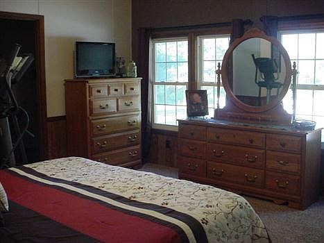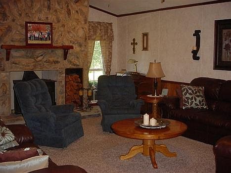 Stone wall with hearth & cathedral ceiling in the living room makes a statement that welcomes you in the front door. While pretty columns frame the dinning room & an island steals center stage in the pretty kitchen. Nice country home with 5 bedroom, 3 bath with lots of room for a family inside & out. Just minutes from 4 Rivers Conservation Area...Lots of fishing & hunting! Sliding glass doors lead you onto the deck & gives you a view to enjoy. Oversized master suit makes a nice retreat. Full walk out basement that has 2 bedrooms, rec room, storage, & garage. French drain installed that keeps the basement dry. Would make a great hunting lodge. The house is framed for a staircase to be installed in the dining room, but the owner didn't want to give up the floor space there. That is why the staircase was added in the bedroom. However the staircase could be enlarged in the same location or moved to the dining area if desired.