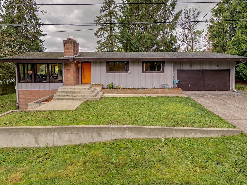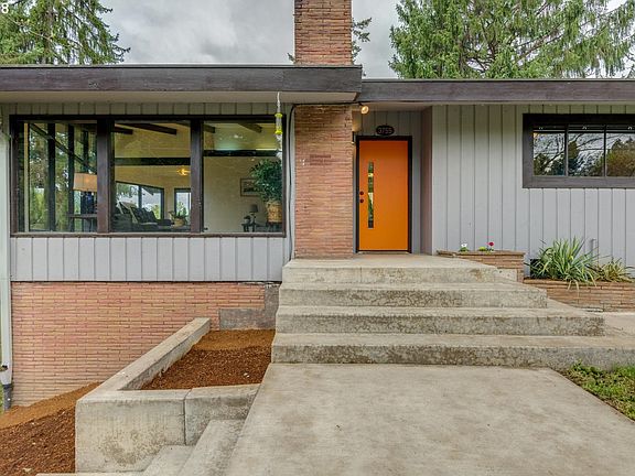True Mid-Century Modern design with a spacious floor plan and lots of light. Close to NIKE, New Seasons, and more! Walls of windows + vaulted ceilings. Pristine oak hardwoods, sleek + stylish kitchen with stainless steel and exposed brick. Downstairs enjoy a family room with 2nd fireplace, huge laundry/utility room and additional storage. Shop space @ back of garage. Open Houses Saturday 04/21 11am - 1pm and Sunday 04/22 12pm - 2pm.