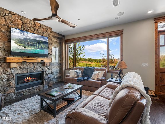 Enjoy the stunning mountain views from this gorgeous golf cottage. Wake up to a breathtaking view of the San Francisco Peaks every morning in your mountain getaway. This home is ready to launch any adventure you could want, ski, hike, golf, mountain bike or just sit back and enjoy the incredible view. High end finishes throughout. Pella windows, Kitchen Aid gas range/oven, Granite counters, wood floors, Tesla charger in garage, covered balconies. Flagstaff Ranch offers Golf, Dining, a Rec facility with tennis, pickleball, pool, first class workout facilities and group events. Nestled in the beautiful Ponderosa Pines, you truly able to enjoy the mountain lifestyle. Furnishings are available by separate agreement for complete turnkey. Buyers are required to purchase a Golf membership.