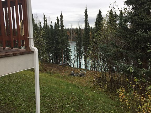 Beautiful 2 bedroom/2 bath (1720 sq. ft.) custom home on Kenai River. $1500 per month + gas/electric. Riverfront dock with fish cleaning table, rod holders, and bench. Oversized two car heated garage (840 sq. ft.) with work benches/shelving, automatic garage opener. Pole barn (3 stall) for boat, 4-wheelers, etc. Walk-out French doors to deck overlooking river. Radiant floor natural gas heat, satellite system ready. Wired speakers for surround sound. Flat screen TV mount. Large open kitchen with plenty of cabinets, walk-in pantry, refrigerator, dishwasher, electric double oven range, microwave/exhaust fan, garbage disposal, reverse osmosis water filter. Wet bar with compact refrigerator. Also includes water softener, indoor laundry with washer/dryer, efficient Blaze King wood stove. Lots of storage throughout including homesteader cabin for fishing gear and other "stuff." Large one acre lot, great neighborhood, plenty of parking. NO SMOKING APPROVED small housebroken dog with additional deposit. ONE YEAR LEASE. First month rent + last month rent + security deposit required. Available approx. June 25th.