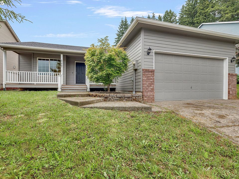 This darling 3-bedroom, 2-bathroom home is full of charm and comfort. A welcoming front porch sets the tone as you enter into the cozy living room with a fireplace and vaulted ceilings. The kitchen features an eat bar and pantry, and flows seamlessly into the dining room, which includes a slider that opens to the backyard—perfect for indoor-outdoor living. The primary bedroom offers a full en suite bath and a spacious double closet. Outside, the backyard provides a lovely space to relax, play, or entertain. A wonderful place to call home!