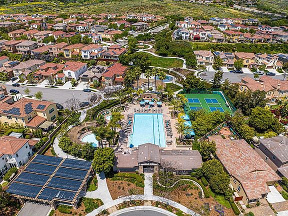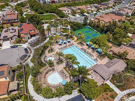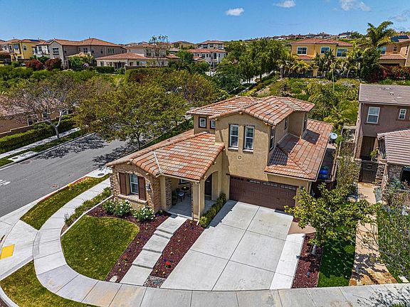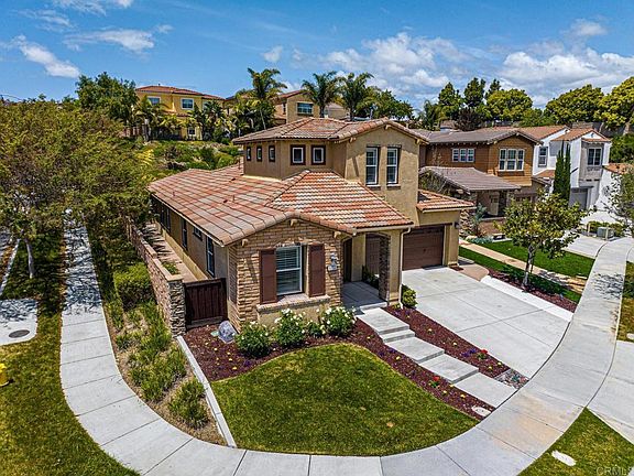 Discover this beautiful home located in the highly sought-after community of The Foothills in Carlsbad. Only a few miles away from sandy beaches and the fun of Carlsbad Village. This premier corner lot gem sits on a quiet cul-de-sac, and is just a short stroll away from the esteemed Sage Creek High School. As you step inside, you'll be greeted with an abundance of natural light that floods the home, highlighting the immaculate condition of the property. The beautiful kitchen boasts an oversized granite island and newer Viking & LG appliances, making it the perfect space for culinary creations and entertaining guests. Step outside to the professionally landscaped yard featuring a California covered patio, new built-in barbeque, artificial grass, and lush tropical plants, all of which provide an idyllic setting for outdoor gatherings and relaxation. You will be in awe of the fishtail palms! This property lives like a single-story home, with the master suite situated on the ground floor alongside two additional bedrooms and 2.5 bathrooms. Upstairs, you'll find a fabulous bonus loft and one more bedroom and bathroom, providing ample space for family, guests, or a home office. Residents of The Foothills community enjoy access to an array of resort-style amenities, including a junior Olympic heated swimming pool, kids pool, hot tub, pickleball courts, parks, BBQ areas, walking trails, and more. Located in the award-winning Carlsbad School District, this property is also conveniently located near shopping centers and just a short drive to the beach, making it the perfect place to call home. Don't miss out on the opportunity to experience the luxurious lifestyle of The Foothills!