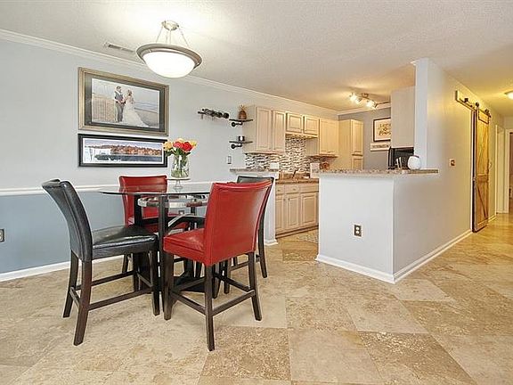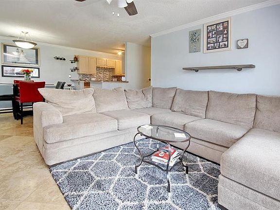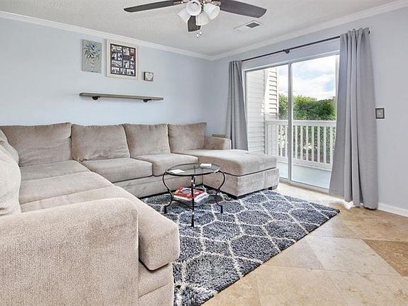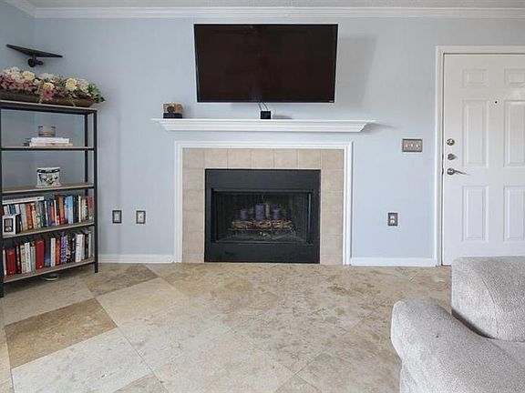 Upgraded and turnkey 3-bedroom, 2-bath, 1st floor condo in the desirable Broadway Station about 0.5 miles to the beach. Upgrades include Travertine stone flooring throughout, tile backsplash and new lighting in kitchen, fresh paint throughout, architectural barn door to laundry room for style and functionality, ceiling fans, custom wood headboards in Master and 2nd Bedrooms and custom built-in bunk bed and 2nd elevated bed in 3rd bedroom. Master Suite includes walk-in closet and walk-in shower. Additional features include wood burning fireplace, covered porch, attached storage, additional 5x8 detached storage and laundry room. Community amenities include heated pool, hot tub, grilling area, car wash area and gated access during the evening hours.