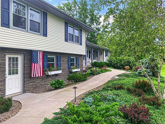 Newly listed tri-level on highly desirable street right outside the Village of Skaneateles. This spacious 3000+ sq foot home offers 3 levels of living. The 1st floor (entering from the garage level) features a family rm w/ sliders to a private backyard, den (could also be used as a bedrm), full bath & laundry room. Just a few steps to the 2nd level & there is an over-sized living room w/ fireplace, dining room w/ sliders to a back deck, & open kitchen/dining area. Only one wall of built-ins separates what could be a totally open floor plan! The 3rd level is host to a master suite (incl private bath & walk-in closet); 3 more huge bedrooms & a nicely sized hall bath. Updated mechanicals, dry basement, public water, and gorgeous(yet maintenance free)landscaping and yard make this a must see!