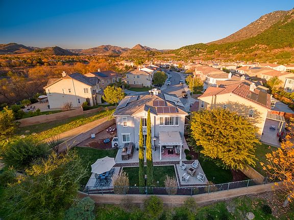 PRIME location & BEAUTIFULLY updated on a cul-de-sac next to a green belt w/no one behind! Bright open floor plan w/plank flooring, vinyl windows, chef's kitchen w/new dishwasher, faucet, quartz counters & pantry, remodeled bath, shiplap decor, office alcove, solar, electric car outlet & A/C. Relax or entertain in the large private backyard w/a soothing fountain, outdoor kitchen, gas firepit, new irrigation & sod, Astroturf & sweeping views of the mountains & hills! Pride of ownership! Near Hwy 76 & I-15.