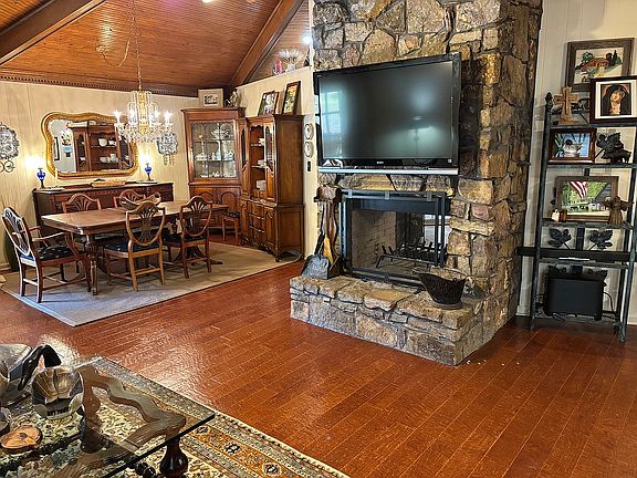 Enjoy country living in the Bartlett area in this unique costume-built ranch style one level home. The main living area has an impressive 360-degree cathedral vaulted beaded ceiling centered by a massive two-sided wood burning fireplace opening to the living room and kitchen. The master bedroom features a large walk-in closet. Large screened in porch overlooks 6.88 acres of beautiful rolling hills frequented by roaming deer (note: the 6.88 acres is also for sale at $160,000). There are two large, costume built separate storage buildings/workshop/potential man-cave. Attached, large two car garage. Numerous home improvements include an NBA quality basketball goal, new chandeliers throughout home, porcelain tile floor in large office, commercial grade fan installed in chimney, French style pantry doors, added pantry and closet shelving, framed barn-wood mirrors in bathrooms, added mirrors in master bedroom closet, southwestern-style bathroom sink with stone countertop, window treatments, large, fenced enclosure for pets, separate fenced in trash enclosure with concrete pad. No city property tax! Only Shelby County tax.