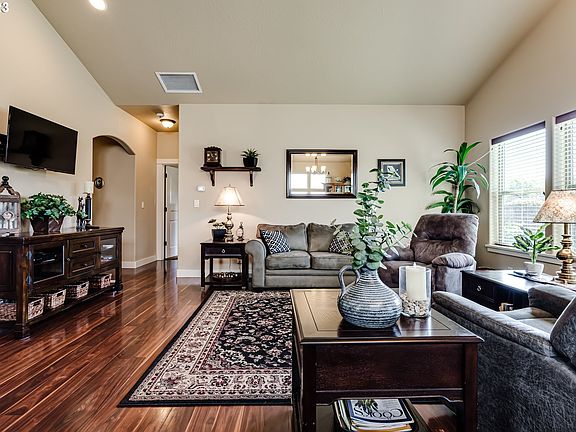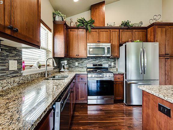 Wonderful Single Level Bruce Wiechert Built Home in Highly Sought after Southwest Eugene Location. Interior Features Spacious Living Room w/ Vaulted Ceilings, Large Primary Bedroom w/ Full Bath & Walk-in Closet, & an A+ Custom Kitchen w/ Granite Counters, Island, Pantry, & Stainless Steel Appliances. Also Don't Miss Stunning Hardwood Floors Throughout the Kitchen, Living room, & Hallway. Exterior Features Oversized Covered Back Patio, Large Fenced Backyard, Inviting Covered Entry, & Mature Landscaping. Immaculately Kept Inside Out, Fantastic Setting, a True Must See.