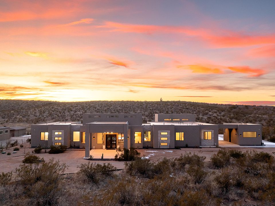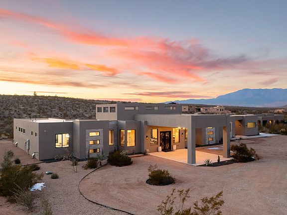 !!!SELLER FINANCING AVAILABLE, PLEASE CALL TO DISCUSS!!! Experience unparalleled luxury in the desert oasis of Hurricane, Utah. Nestled in the breathtaking landscape of Southern Utah, this dreamy estate seamlessly blends Santa Fe and contemporary modern styles, creating a harmonious fusion of design and natural beauty. Crafted by the renowned Solid Group Utah, this masterpiece boasts meticulous attention to detail, with clean lines, custom woodwork, custom cabinetry, natural stone, and tile work that elevate the living experience. Step into a world of luxury with this 5-bedroom, 5-bath, 4-car garage home, along with 2 RV garages and a separate detached garage with already roughed-in plumbing and a mini-split system installed, allowing for an easy conversion to a 337-square-foot CASITA! This home offers an abundance of amenities, including an expansive infinity pool, indoor and outdoor surround sound system, private pickle-ball court, outdoor kitchen, custom fire pit, and a porte-cochère entry. Not to be forgotten, the large entertainment room/flex room with a private kitchenette and bathroom adds an extra layer of entertainment or room to host guests. Strategically situated, this estate offers breathtaking views of the Hurricane Valley Cliffs, towering over the copper-hued desert dotted with sagebrush and sandstone formations. Within minutes, you'll have access to Southern Utah's top recreational attractions, including Copper Rocks Golf Course, Sand Hollow Reservoir, dunes, and BLM land, with the iconic Zion National Park just a short 30-minute drive away. Don't miss this opportunity to own a piece of paradise. Schedule your private tour of this luxurious estate today. Square footage figures are provided as a courtesy estimate only and were obtained from the plans. Buyer is advised to obtain an independent measurement. Buyer to verify all information.