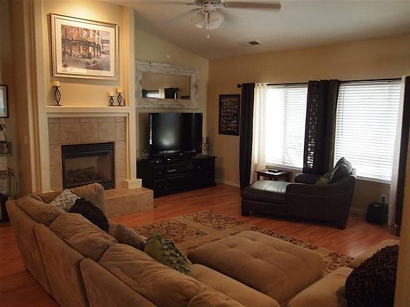 Gorgeous home located in the Northwest Madera, a desirable neighborhood. This wonderful home offers 3bd/2 bath, 4th bedroom/den option with laminate floors, over 2000 sq. foot home, built in 2004. Walk in to the spacious family room with laminate flooring, features a cozy fireplace, vaulted ceilings and beautiful arches throughout. The kitchen is gorgeous, featuring Granite tile counter tops with custom stone backsplash, stainless steal appliances, tall ceilings, sky lights, lots cabinetry, double pantry, breakfast bar, and dining area. Large indoor laundry room with plenty of storage. Nice size bedrooms, Carpet in all bedrooms, Tile counter tops and tile flooring throughout bathrooms. Master bath features sunken tub and separate standing shower, his and hers closet. Spacious two car garage. Large covered patio area, nice size yard with Alumawood pergola covering with trumpet vines. This is a must see. Call today for your private showing. Hurry this home will not last.