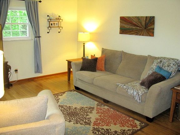 This immaculate home is ready to move into! Everything has already been done, including new windows. Enter into the large living room with hardwood floors. The eat-in kitchen is a nice size and has updated appliances, tile, counter tops, sink, and backsplash. Both bedrooms have hardwood floors and are very spacious. The bathroom has been totally updated and has beautiful tile work and a contemporary feel. Downstairs you'll find a spacious laundry area, 1-car garage, and plenty of storage. Outside is perfect for summer entertaining with the large wrap-around deck with seating area. Beautiful country setting not far from Rt. 33.