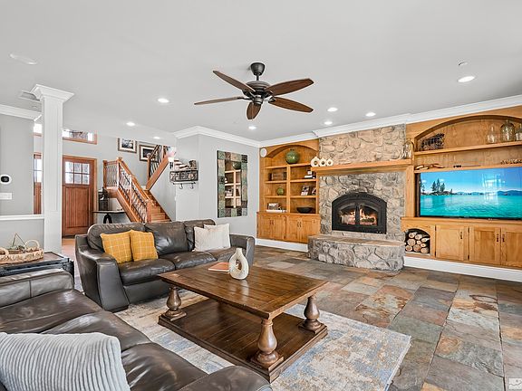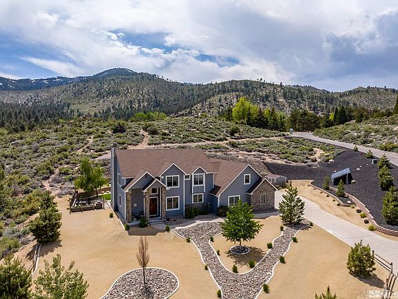 MEGA Price Adjustment! Welcome to 3757 County Line Road, a stunning estate nestled in the picturesque surroundings of Carson City. This remarkable residence offers an ideal blend of modern comfort & serene countryside living. Situated on a 2 acre lot, this home provides ample space & privacy while being conveniently located near urban amenities & RV parking. The property's exterior boasts a charming yet contemporary design, characterized by its tasteful combination of stone accents & siding., The neatly manicured front yard welcomes you with a well-maintained lawn and low-maintenance landscaping. Included with the property are 22 Enphose Energy Solar Panels that are owned. The expansive driveway can accommodate multiple vehicles, ensuring convenience for homeowners and guests alike. The garage includes a 220 amp for your convenience. Step inside this inviting home, and you'll be greeted by a warm and spacious interior that is sure to impress. The open floor plan seamlessly connects the main living areas (which includes a full indoor/outdoor surround sound system), creating a perfect setting for both entertaining and comfortable everyday living. The living room features large windows that allow an abundance of natural light to flood the space, creating a bright and airy atmosphere. Bamboo flooring throughout the downstairs as well as the office space above the garage. Cozy up by the fireplace during colder evenings, creating a cozy ambiance for relaxation. The gourmet kitchen is a chef's dream, boasting high-end stainless-steel appliances (new in fall of 2022), sleek quartz countertops (new in fall of 2022), and ample cabinetry for storage. The island provides additional workspace and doubles as a breakfast bar, ideal for casual dining or socializing while cooking. Adjacent to the kitchen is an elegant dining area, perfect for hosting family gatherings or enjoying intimate meals with loved ones. Included in the home is a fire suppression system and a convenient laundry chute as well. A sliding glass door leads to the backyard, seamlessly blending indoor and outdoor living. The property offers a spacious master suite, complete with a comfortable bedroom, a walk-in closet, and an ensuite bathroom. The ensuite bathroom features luxurious fixtures, heated flooring, a jetted tub, a separate shower, and a double vanity, providing a private oasis for relaxation. Additional bedrooms are well-appointed, offering ample space, natural light, and closet storage. The well-designed bathrooms feature modern fixtures and finishes, catering to the needs of the household. Included as well are multiple work-from-home spaces. The backyard of 3757 County Line Road is a true sanctuary, offering a private retreat for outdoor enjoyment. The expansive patio provides the perfect setting for al fresco dining, hosting barbecues, or simply relaxing in the fresh air. The property is prewired for a hot tub as well. The yard is large enough to accommodate a variety of outdoor activities and back yard is fully fenced. Conveniently situated on County Line Road, this property offers a desirable location with easy access to both urban amenities and natural attractions. Carson City provides an array of shopping, dining, and entertainment options, while the surrounding area offers beautiful parks, hiking trails, and scenic views. Home is perfectly situated only 30 minutes from Lake Tahoe beaches, various ski resorts, Washoe Lake and Reno International Airport! Don't miss the opportunity to make 3757 County Line Road your new home. This remarkable estate offers the perfect combination of modern and countryside living, providing a haven for relaxation and creating cherished memories. Welcome home!
