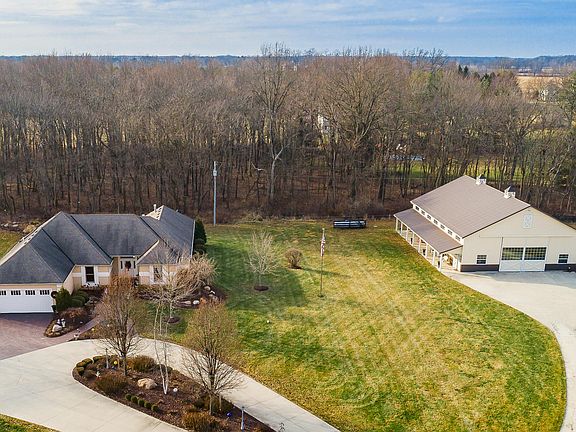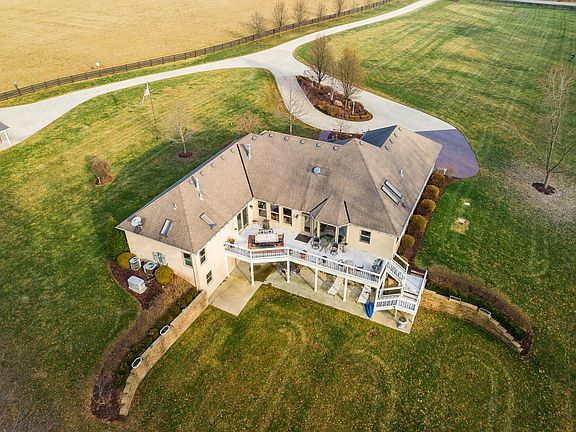 ELEGANT EQUINE RANCH ESTATE: Once in a life time opportunity to own this turn-key estate for $969k. Includes over +/- $400k in furnishings: high end art, oriental rugs, custom furniture and lighting throughout. Reproduction cost for this dream home estate, would be +/- $1.4M, + the cost to furnish it, another $400k for a total of +/- $1.8M. Sophisticated style, professionally designed; controlled entrance gates. Amish built custom horse barn w/2 offices & 1/2 BA. Opulent kitchen, custom cabinetry & woodwork, stunning granite, designer lighting over a massive island. Formal dining area & great room w/vaulted ceilings & stone fplc. Owner's suite w/vaulted ceilings, fplc, deck access & spa-like bath. LL has a large family room, full bath and is plumbed for a 2nd kitchen & bar.