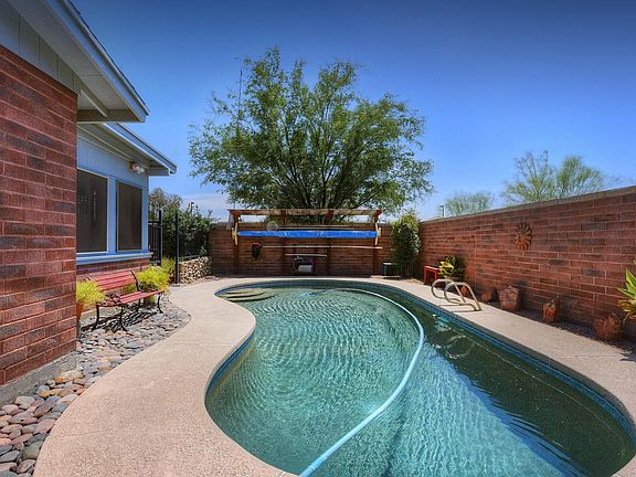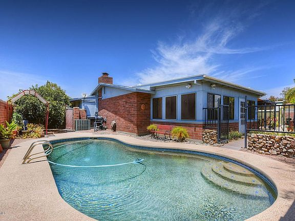 Absolutely exquisite home w/fine craftsmanship & updated/upgraded features throughout. Outstanding backyard w/3 sheds, arbor, small greenhouse & a sparkling pebble-tec pool which is gated off separately from rest of backyard. Home is great for pets & kids. Inside of home features stainless steel appliances, silestone countertops, updated kitchen including cabinets & tumbled stone backsplash, updated bathrooms, beautiful family room fireplace, rich warm and cozy Arizona Room, updated lighting and plumbing fixtures, solar tube, french doors. Kitchen has been opened up to family style great room. Wood & ceramic tile flooring throughout home except Arizona Room which features cool & stylish painted concrete floors . Newer HVAC unit, sunscreens, ceiling fans & mature landscape are also a plus.