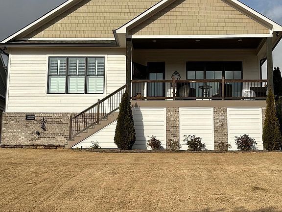 Nestled in South Water community, lakefront retreat w/breathtaking views of Guntersville Lake & mountain backdrop. Custom 3-bdr/3-bath home w/elegant open floor plan & stunning great room featuring wooden vaulted ceilings & cozy gas log fireplace. Gourmet kitchen has oversized island & leathered granite countertops. Master suite is private sanctuary, w/spa-like bathroom & expansive walk-in closet. Pella windows, Trex decking across 2 covered porches, & modern tankless hot water heater. 2-car garage w/storage space, community amenities have pool & clubhouse.