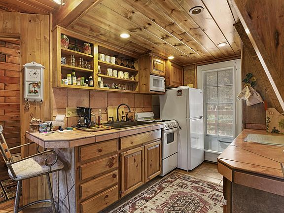 As you approach, you'll be greeted by a cozy front deck, perfect for enjoying your morning coffee or watching the sunset. Step inside to discover a well-maintained interior featuring tile flooring, a spacious living area, and a cozy fireplace, ideal for those chilly mountain evenings.