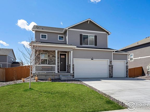 Welcome to Your Dream Home in Mountain View Ranch!Built in 2022, this beautifully maintained single-family home in the sought-after Mountain View Ranch subdivision combines modern design with cozy charm. Featuring 3 spacious bedrooms, 2.5 bathrooms, and a 3-car garage, this home offers both functionality and style. Step inside to discover luxury vinyl plank flooring throughout the main level, adding warmth and elegance to the open-concept layout. The inviting hallway leads to a bright and airy living space and seamlessly combines the cozy living room, dining area, and a gorgeous kitchen outfitted with sleek white cabinetry, a prep island, stunning granite countertops, and stainless-steel appliances. Upstairs, plush carpeting provides comfort in the bedrooms and loft, creating a relaxing retreat. The loft space is perfect as a second living space, office, or reading nook, along with a conveniently located laundry room near all bedrooms. Out back, enjoy summer evenings watching the sun set behind the mountains under the beautiful wood pergola, surrounded by established landscaping- an ideal space for relaxing or entertaining. Located in the charming Town of Wellington, you'll love the small-town feel with the added perks of new breweries, deli's, restaurants, local shops and town festivities just minutes away. Property has NON-POTABLE WATER and NO Metro District.