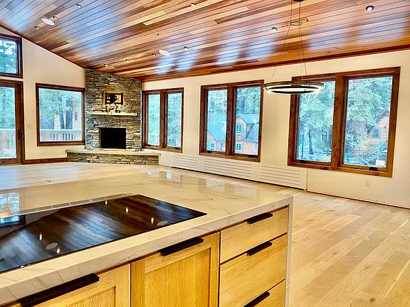 New home and large parcel right on Blackwood Creek located in Tahoe Pines on the lakeside of Highway. Contemporary finishes create a modern mountain home featuring 4 bedrooms (3 en suite), 4 full bathrooms, great room, family and 3 decks.
