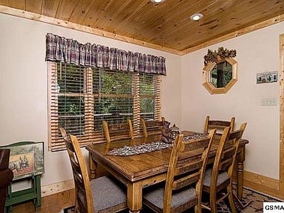 Charming Chalet in Wears Valley with breathtaking mountain views! Located in an upscale community adjacent to the Smoky Mountain National Park with easy access through Metcalf Bottoms. Completely re stained in 2014! The home is designed with 3 bedrooms and 3 baths and is tastefully furnished. The entry level features the kitchen and dining area, living room with wood burning fireplace, and master bedroom. The lower level features the recreation room with pool table, guest bedroom and bath with Jacuzzi. The loft level features the 3rd bedroom and 3rd bath. There are extensive decks on all sides of the main level and rear decks on the upper and lower levels. Relax in the hot tub and take it all in! The home is fully furnished and ready for an investment opportunity, vacation home or primary residence. New Dishwasher 2016. Furnishings include original art by Robert Tino ($5000). Main floor bedroom furniture and basement bedroom furniture were custom painted ($3000). Custom crafted stained glass. Currently in a rental program and performing well.