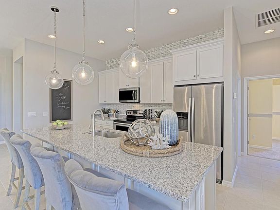 The Harbour may well be homeowners' heaven.. Its thoughtful, clever design attains the challenging goal of having both a very spacious home and the feeling that nothing is more than a few steps away. With three bedrooms and two baths, it encompasses all of the pampering amenities of our larger models, including an optional screened-in swimming pool for the finest in Florida living. This beauty even features a separate dining room for special occasions. Living here is reason enough to celebrate!