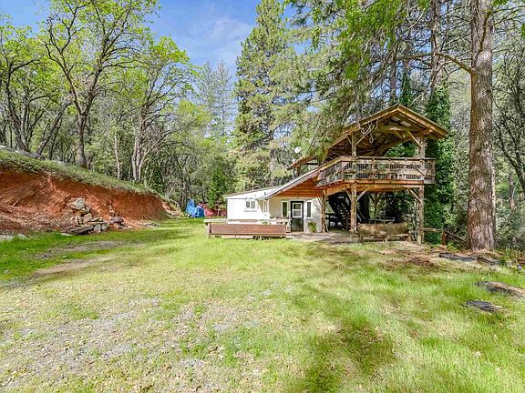 Dreaming of your own Swiss Family Robinson Adventure in Murphys? This is it! You can have your own haven in the woods with a huge outdoor area and deck that is to die for. Beautifully constructed, the deck provides a large perch among the trees for relaxation or a bar for entertaining and dancing the night away. The property has a waterway stream known as the flume that runs thru it where you can fish, cool off or walk along the trails. This cabin is on almost 17 acres of beautiful scenery and would make an outstanding short term rental experience, an outdoorsman's retreat or an easy living oasis. Main room can be a bedroom/living room with bunk beds in the other room. There is plenty of level parking for RV's, boats and a container for storing all your toys. There is an outdoor shower and a wood stove to keep you warm in the winter and cinderblock construction will keep you insulated in the summer. Private location hidden from the road with level driveway. Located less than 10 minutes from Murphys where you can enjoy visiting one of the many wineries, breweries, restaurants, artisan food shops, boutiques and events. You can be in Bear Valley Ski Resort for snow play or fishing at Lake Alpine in 45 minutes. You are 90 minutes from Yosemite, 25 minutes to New Melones Lake and 25 minutes to Calaveras Big Trees State Park and so much more!