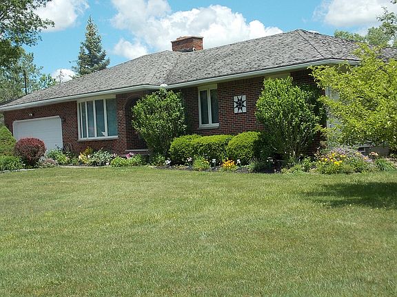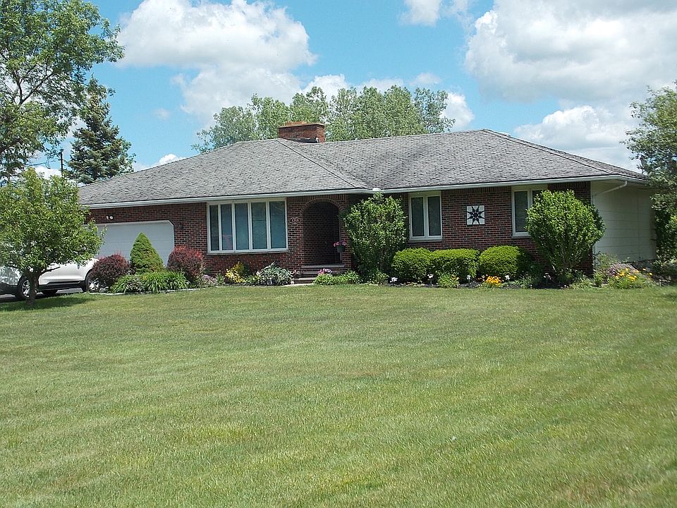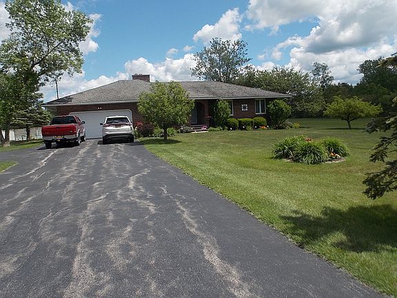 Acreage...County living at it's best! 3 bedroom, 2 bath ranch with brick front and 2 car attached garage. 15 includes extra lot acres. Kitchen and family room open concept with oak cabinets and gas stone fireplace. Living room with wood stone fireplace and bay window. Lots of closets for storage. Full bath with whirlpool bath and shower. Master bath with standup shower, newly refinished. First floor laundry. All appliances included. Finished basement with carpet, which also includes unfinished storage and workshop with tons of permanent shelving. Finished sewing room or office in basement. Enclosed 12' x 30' carpeted patio, knotty pine tung and groove walls and ceiling. In ground 18' x 36' pool. 24' x 30' detached storage garage with garage door opener and vinyl siding. 1/4 acre stocked pond approximately 700" from road. Approximately 7 acres mowed, the remaining acreage is mature hardwoods.