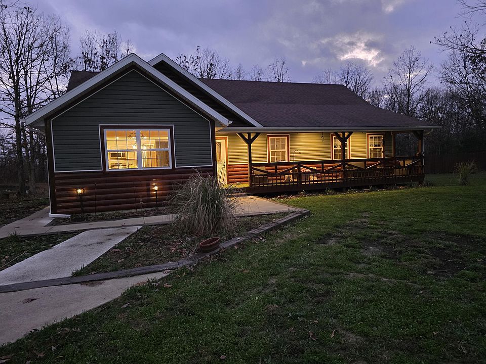 This beautiful 4-bedroom, 2.5-bath home sits on 5.5 wooded acres and features central heating and air, luxury vinyl flooring with carpeted upstairs, custom cabinets topped with quartz countertops, and a vaulted ceiling in the living room. The spacious master suite offers a jetted tub, stand-up ceramic tile shower, and large closets, while the covered back porch overlooks a stocked pond perfect for relaxing or fishing. Outside, enjoy a 35x40 insulated shop plus an additional heated building with water and electricity, ideal for a dog kennel or game room�all in a private, peaceful setting. Come see it today!