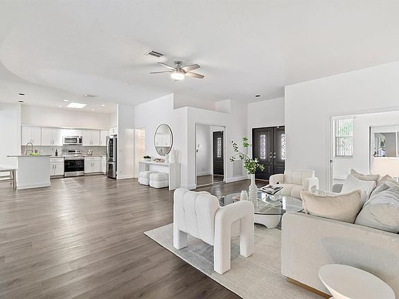 Welcome to this nicely renovated 3-bedroom, 2.5-bath home in the highly desirable Summer Chase community! This spacious home blends modern style with security, featuring a recently renovated (2021) open-concept kitchen, newer roof (2019), A/C (2019), hurricane impact doors and garage, 2022 gutters, and accordion shutters throughout and new flooring. The primary bath offers a touch of luxury with a never-used stand-up tub. The backyard is a peaceful retreat with fruit trees, perfect for enjoying fresh produce. Enjoy the community’s fantastic amenities, including a clubhouse with activities, a pool/spa, Fitness, bocce, shuffleboard, and tennis/pickleball courts. With its open layout and numerous upgrades, this home is move-in ready and full of potential!