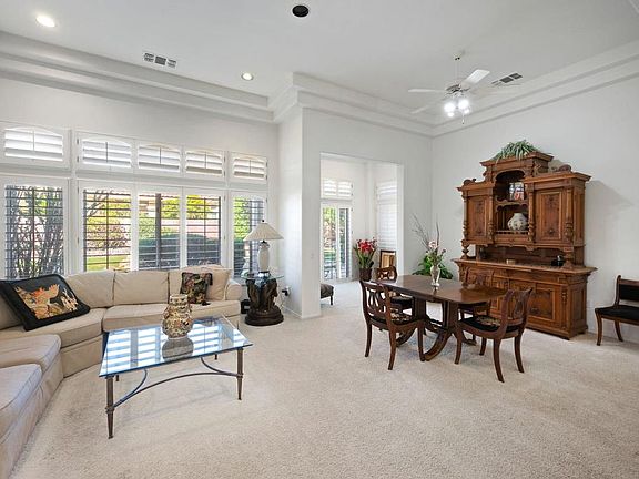 Welcome to fabulous Sun City Palm Deserts 55+ resort style gated community where the amenities are bountiful & the golf is spectacular. Enter into this unique Emerald floor plan that offers 3 bedrooms, 3 baths & 2476 sq ft of living space. The minute you walk into the door you are greeted by a warm and welcoming formal living and dining room with added bonus room that makes for a perfect reading and relaxation space. Cook's kitchen is spacious and perfect for entertaining as it opens up to the fabulous great room. Some of the most unique features this home has to offer are the room sizes. The first guest suite offers a great bonus area that is being used as an office. Second extended guest suite offers an en suite with full bathroom & not just one closet but also a large walk in closet with built ins. The primary bedroom is charming with picturesque bay window, large bathroom with dual sinks, stand up shower, soaking tub and walk in closet. So many unparalleled features such as the elegant plantation shutters & the architecturally designed ceilings throughout. Private backyard is lushly landscaped with your own pebble tec spa. Come enjoy this sensational home in a beautiful community that offers restaurants, pools, tennis, pickleball, fishing, golf, softball & dog parks just to name a few. Looking for a social experience then join one of the many clubs like ceramics or music. This home & community is the epitome of the desert dream.