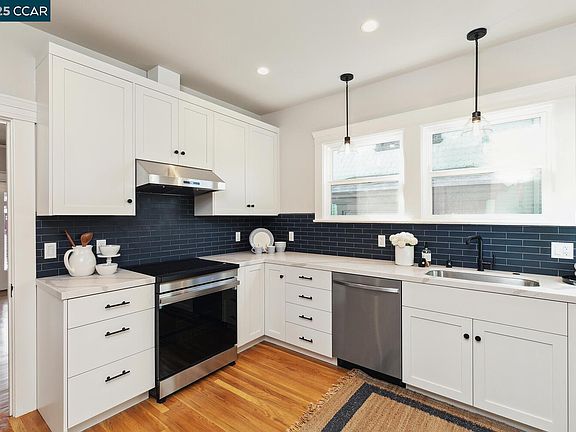 This classically renovated 1912 Craftsman style home has 3 bedrooms + office, 2-1/2 bathrooms, and ~2,123sf on a flat 6,446sf lot. All new kitchen and bathrooms done in a contemporary Craftsman style, new dual pane windows, owned solar, all new plumbing, restored hardwood floors throughout, many period details intact. Just blocks from College Ave, Rockridge BART, Market Hall, shops and restaurants. Open Sat/Sun 2-4pm.