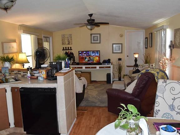 Welcome to Hidden Cove East, a 55+ community where the occupants own their homes, but not the land. Paying lot rent for the home gives you and your guest beautiful surroundings, a social network of friends, and access to the amenities of the community. Lot rent for this home is $360 per month...... Motivated Seller!..... Value! Value! Value! Lot Rent is $360!..... Just bring your clothes and toothbrush! Amazing price on this cute and cozy two-bedroom, two-bath, split bedroom plan home. Light and bright with great views of Lake Henry right in the back yard. The textured driveway is beautifully adorned with tropical plants for an island-like appeal...... The front entry opens up to the comfortable living room that not only includes all furniture but a television. To the left is a nice guest bedroom located at the front end of the home. This spacious area has and en suite bathroom with a shower...... The large, eat in kitchen has a built-in hutch area and lots of cabinet and counter space, making this center-of-the-house kitchen super convenient for dining inside, out in the Florida Room or on your outdoor patio with a stunning lake view. The Florida room is enclosed and air conditioned. The area includes a charming shed for those laundry days. There's a bricked patio that includes a gas barbecue grill for outside picnics with family and friends!..... The spacious primary bedroom has a nice closet and includes a king bed. There is an additional bathroom just off the bedroom...... Hidden Cove East is an active, affordable adult community located in Winter Haven, very close to shopping in Haines City. Hidden Cove East also offers a fishing pier to access some of Winter Haven's best fishing! Enjoy the full-service clubhouse and get rejuvenated with a dip in the heated swimming pool or Jacuzzi...... This one won't last long! Peace and quiet and peace of mind. Fast closing with park approval!