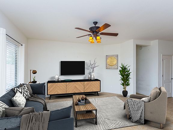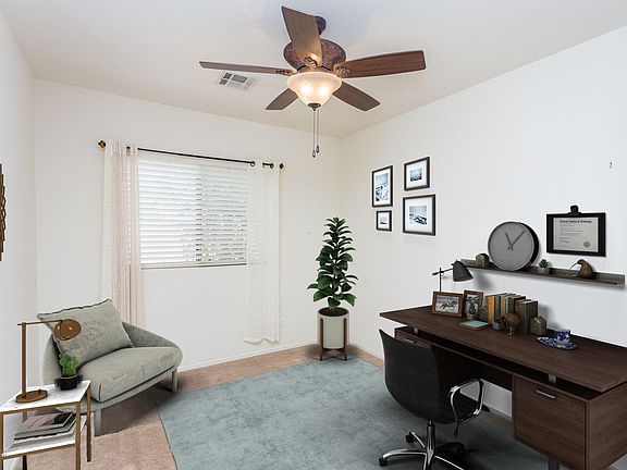 Here is your chance to have ''Instant Equity'' as this lovely home is priced well below recent appraised value. Beautiful, spacious home with a lovely & private back yard. Has 3 good sized bedrooms and 2 full baths. A large walk in closet in the Master Suite. Has a fabulous office/den area & generous open floor plan. Lovely porcelain tile throughout home with carpet in the bedrooms. Roof was replaced about a year ago & the roof mounted AC unit was done at the same time. Upgraded light fixtures & fans throughout home. Colorful Landscaping is on a drip system & offers plenty of comfortable outdoor space to enjoy all of the pleasant Arizona seasons.