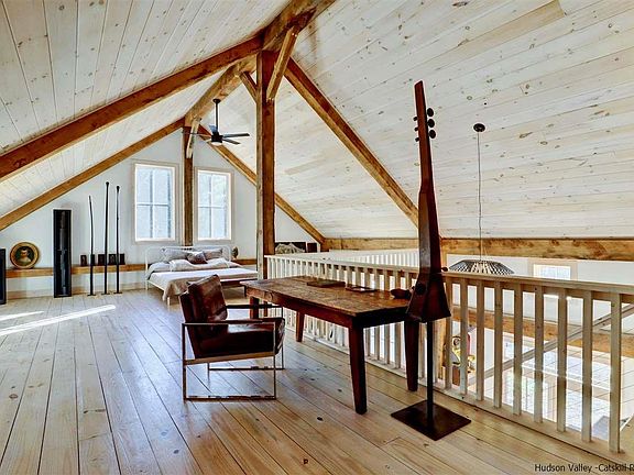 Live the ultimate Hudson Valley experience with this new construction on 16 picturesque acres. This property is totally peaceful and private. Located in a highly sought after location off a quiet country road, it finds itself at the end of a long driveway. Designed by a Hudson Valley native artist, you will find brilliant attention to detail, quality, and scale in this modern hemlock post and beam home. Well constructed and well insulated, with low-e Marvin windows and doors, a brand new propane boiler for heat and hot water, as well as mini split to keep you cool in summer. It's easy to imagine yourself living with the open floor plan that has beautiful radiant heated cement floors, 11 foot ceilings, an open kitchen with gourmet appliances, large studio space, and a deep soaking tub. The loft-like second floor is bursting with potential! With 16 acres of mostly level and gently sloping meadow and woodlands, there is an abundance of room for a swimming pool and tennis court. If you are dreaming of homesteading this property is a chance to build that dream with a chicken coop, two barns, ample room for animals and an expansive garden. There is a meadow with lovely sunsets, old stone walls, young fruit trees, and acres of beautiful woodlands for walking or riding to explore. Under 2 hours from NYC, and 15 minutes to Kingston's trendy Stockade District with gourmet restaurants, galleries, and shops. Conveniently located 15 minutes to NYS Thruway, NYC bus, and 30 minutes to Amtrak. Close to Woodstock, Stone Ridge and Rhinebeck, and surrounded by all the upstate cultural events, farmer's markets, restaurants, and attractions!