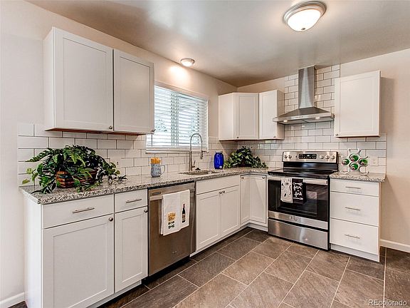 Updated Three Bedroom + Office/Bedroom RANCH Home with a Very Large Finished Basement including a WET BAR for Entertaining and New Carpet, Laundry Area has Ample Space for Storage, Beautiful Hardwood Floors on the Main Level, 3 Updated Bathrooms, Kitchen is Gorgeous with Eat In Space, Stainless Steel Appliances, Granite Counters, Graphite Tile Floors, NEW WINDOWS on Main Level, NEW ROOF, Updated Electrical Panel,Covered Patio and a Large Backyard with Plenty of Room to Roam or add an Office Shed. NO HOA. Less than 20 minutes to Downtown Denver VIA I-25 with Light Rail Close By....... Hiking, Close Proximity to Greenway Trail, Coffee Shops and Shopping Very Near.