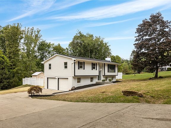 Welcome to this meticulously updated split-entry home nestled on nearly half an acre. Be enamored by all modern comforts and style that this spacious home offers. Inside, you'll find a freshly remodeled master bathroom, new floors, carpets, doors, paint, and trim throughout, providing a fresh and inviting atmosphere. French drains and downspouts have been thoughtfully installed, ensuring efficient drainage. The exterior showcases new retaining walls and beautiful stamped concrete both at the front and rear, enhancing curb appeal and outdoor living. The newly finished basement is an added retreat, featuring French doors that open to a spacious stamped concrete patio, perfect for entertaining. Additional upgrades include epoxy flooring in the garage and laundry room, a new roof including chimney flashing, and recently added forced air. This home is the epitome of modern updates combined with thoughtful design and high end comfort.