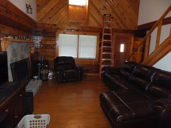 Gorgeous log home with pond. Large covered deck, nice gentle laying & partially fenced yard, wood floors, tongue and groove walls, new central heat/air unit, all appliances. Located in a beautiful setting just outside of town. Master BR and Bath located on main level, 2BR and a bath upstairs, plus an open loft area. Basement includes a living room with flue for fireplace, a bedroom, a kitchenette area, a full bath, and storage room. There is a large cement patio off the basement. Nice detached storage building for your mower & tools. Folks this is a fantastic place for a retreat or permanent residence. Come on home to Tennessee!