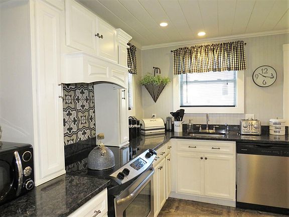 This Sweet New Englander on a corner with granite lined brook going through. Updated kitchen with granite countertops, small island, many built-ins. Sun room being used as primary bedroom for one floor living. Upstairs, 3 small bedroom, full bath and laundry. As cute as can be, this home comes with 2 driveways and room for a garage.
