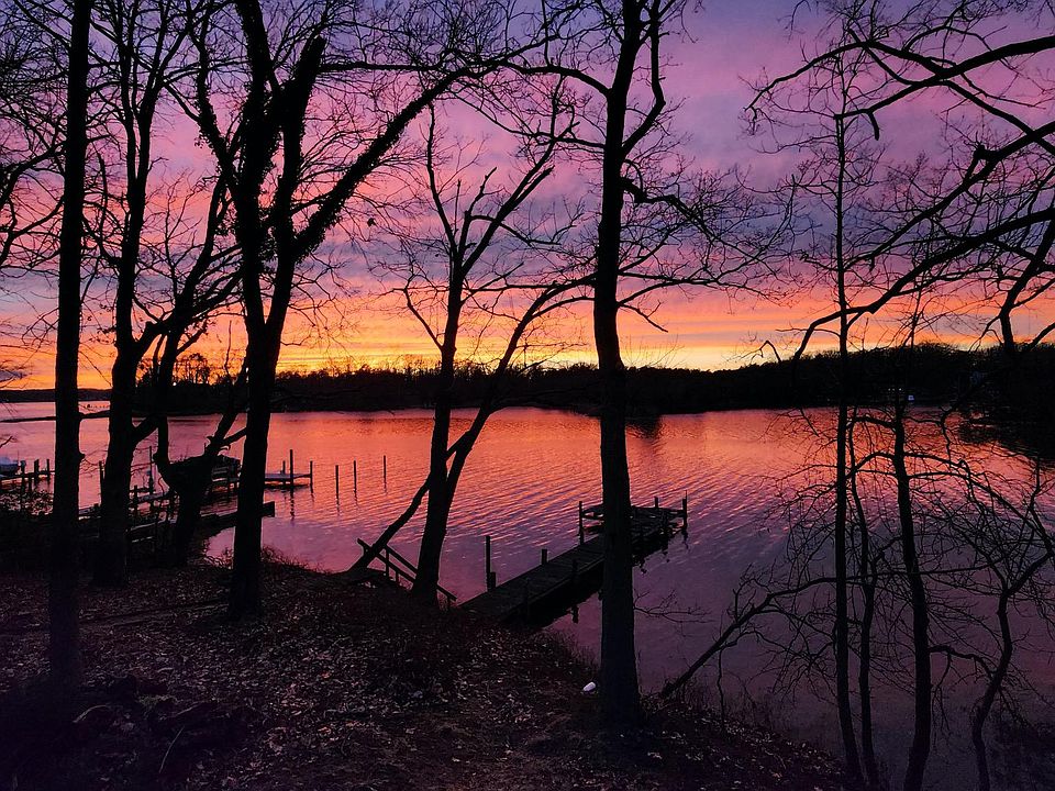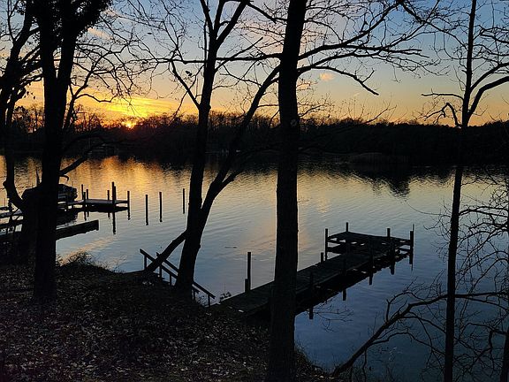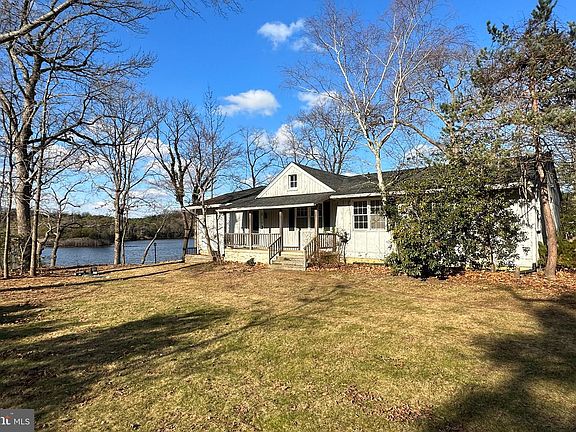 Private, one acre waterfront setting with incredible sunsets, great water views and mature trees. Located on protected Blackhole Creek with approximately 185 feet of waterfront and sandy beach! Cherished family home since 1976 started as summer cottage and with additions became a full time home for 45 years. Kitchen, Living Room with cathedral ceiling and Family Room with brick fireplace open to waterfront deck and views of the water. Living space all on one floor with 3 bedrooms and 2.5 baths and a spacious unfinished basement and attic. Detached two car garage with storage above, roof in 2015, well in 2000, Innovative Septic System in 2020, Heat Pump in 2012. Property, house, pier and steps to pier sold "As Is". Do Not Walk On Pier or Steps to pier. Rug in family room covers plywood flooring. 3 Large circular stands on deck and in yard were for owner's telescopes.