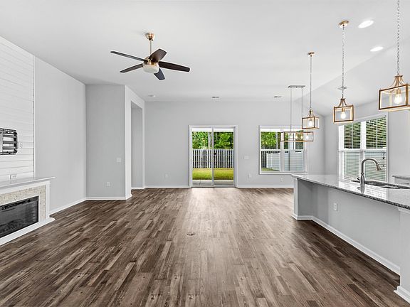 LOWEST PRICE in the Carrara Section currently available! Welcome to this stunning 3-bedroom, 2-bathroom ranch-style home, offering the perfect blend of style and comfort. This move-in-ready home also includes a versatile flex room that can easily serve as a fourth bedroom, home office, or space of your choice. Step inside to find elegant luxury vinyl plank (LVP) flooring throughout, with tile in wet areas and granite countertops that add a touch of sophistication. Thoughtful details like shiplap accent walls, a convenient stop-and-drop area for coats and shoes, and an electric fireplace in the main living area give this home a custom feel. The guest bedrooms are generously oversized, making this home truly stand out. In the main living area, you’ll be greeted by high ceilings, beautiful cabinetry, and custom lighting fixtures. The master suite is a true retreat with its tray ceiling, large layout, and an en-suite bathroom featuring a custom tiled shower with a glass enclosure, a private toilet room, and a walk-in closet. Step outside to relax on your covered porch, perfect for enjoying South Carolina’s beautiful weather. The fenced yard offers plenty of space for kids or pets to play. This home is located in the desirable Tuscany neighborhood, specifically in the Carrara section, known for its resort-style amenities, including a lazy river, multiple pools, a full-size gym, a pool table room, and a luxurious clubhouse available for you and your guests. Recently painted and thoroughly cleaned, this home is ready for its new owner! Don’t miss the chance to make this beautiful home your own—schedule your showing today!